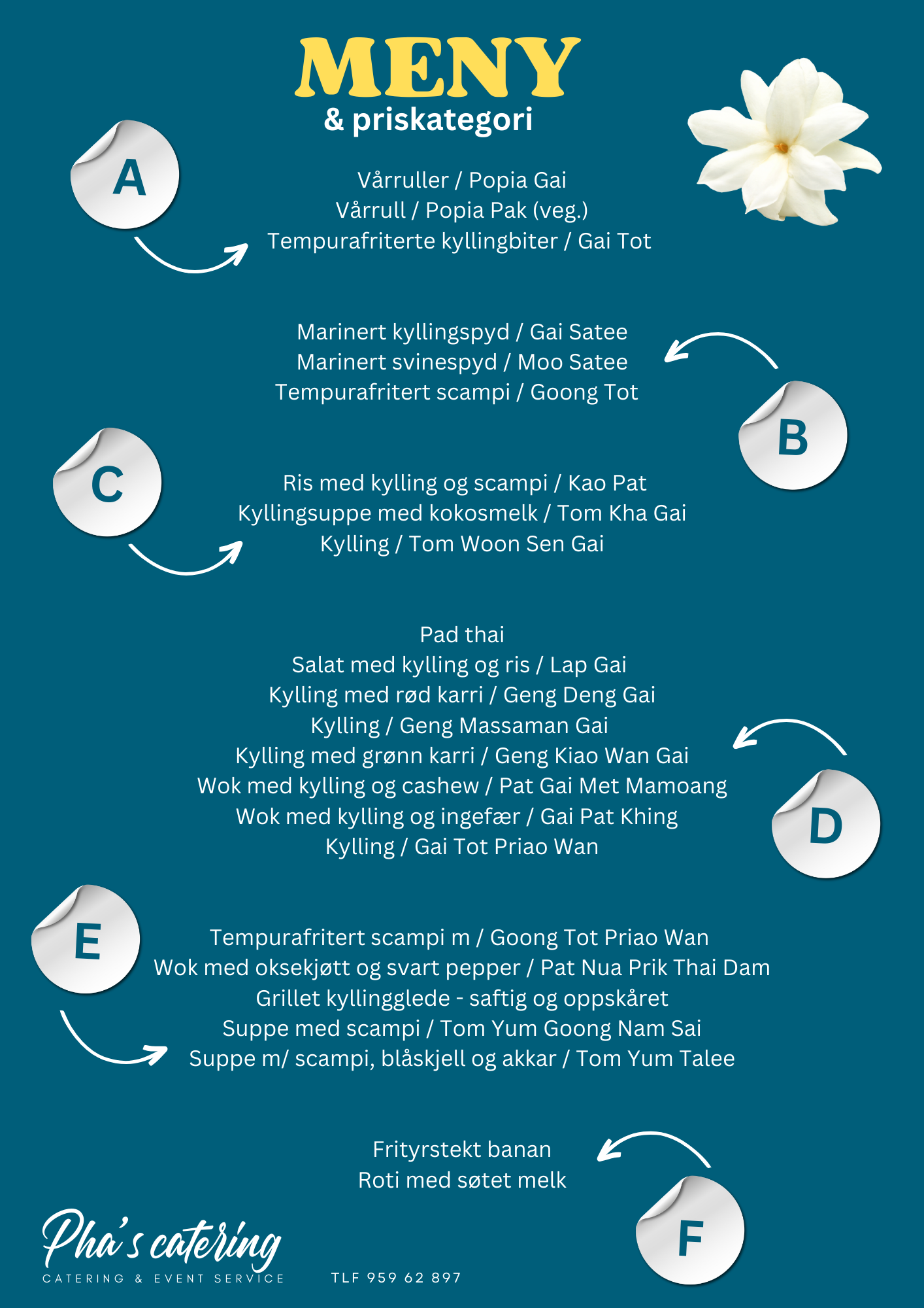 Vi har fem priskategorier, fra A til F. Priskategorien avgjør hvilken type ingredienser og råvarer vi bruker.