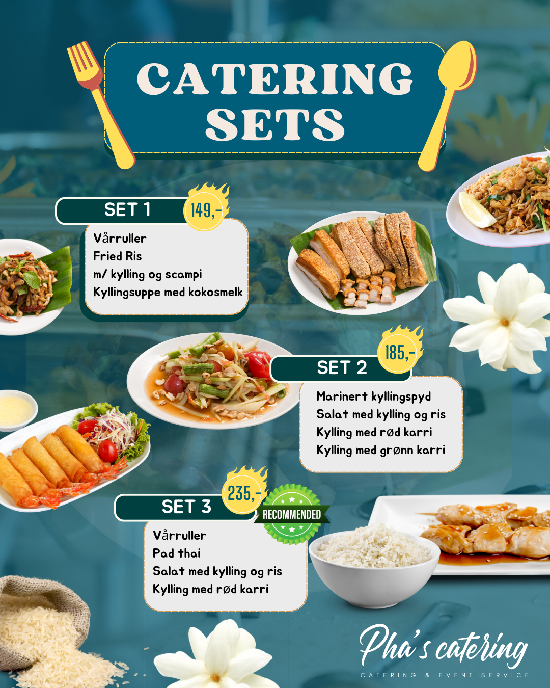 Vi tilbyr catering til alle anledninger, fra små og intimt til store og festlige. Vi har et bredt utvalg av menyer å velge mellom, eller du kan sette sammen din egen meny etter dine ønsker. Ta kontakt med oss for en uforpliktende prat om ditt arrangement. Vi vil gjøre vårt beste for å oppfylle dine ønsker og skape en uforglemmelig opplevelse for deg og dine gjester.